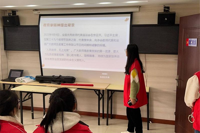图为志愿者宣讲教育家精神。记者 葛旻成 摄