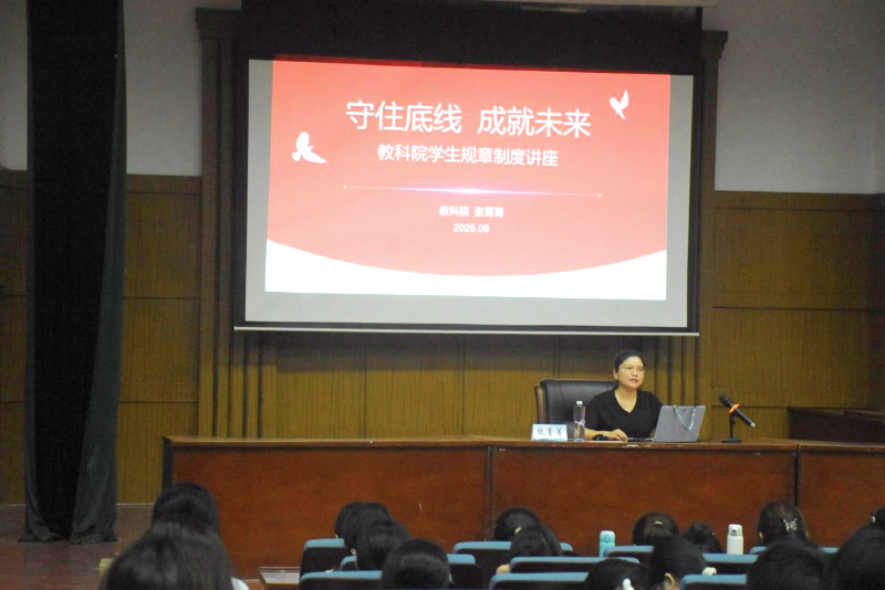 教科网9月8日电(记者 赵珂艺)为帮助2025级学生更好地了解学校规章制度及资助政策要求,保障校园生活的顺利进行,淮阴师范学院教育科学学院于9月8日下午在崇文楼阶105教室开展了规章制度和资助政策解读讲座。本次讲座由教科院辅导员张菁菁和陈萌主讲,教科院全体25级新生参加。
