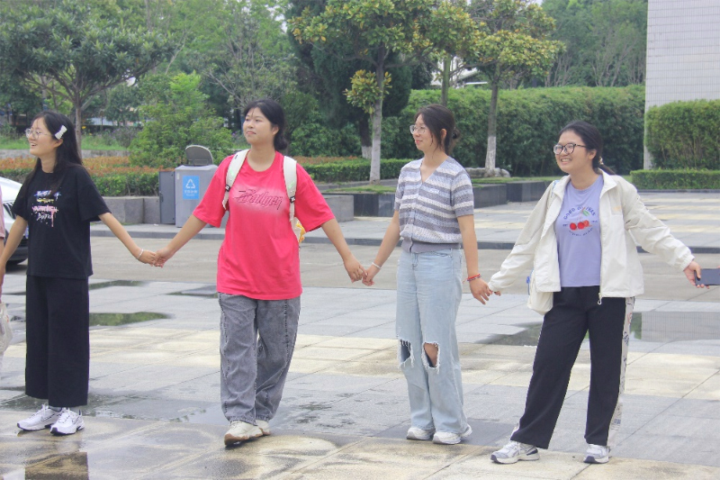 作为活动的核心环节,“心有千千结” 游戏将氛围推向高潮。在此环节中,同学们要做的不只是单纯的拉手互动,而是通过记住同学的形象与协调身体动作的配合来进行游戏。当错综复杂的 “结” 最终化为完整圆圈时,现场欢呼不断,新生们真正实现了 “心手相连”,也在协作中完成了对彼此的深度认知。