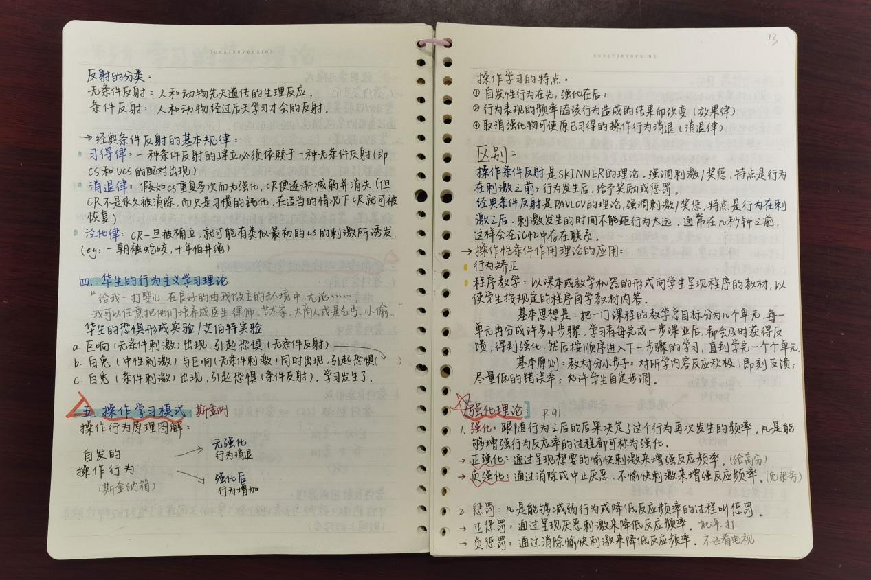 本次课堂笔记评比大赛主要采用学院推荐和自主报名两种形式,参赛学生将本学期开设的任一门专业课的手写课堂笔记上交参评,组织单位将优秀笔记进行整理编号,并集中展示。参赛的课堂笔记,专业风格迥异,各显特色。教科院的学生字迹工整、条理清晰,大纲简洁易懂;美术学院的学生图文巧妙结合、内容形式新颖,具有较高的创新性;化学学院的学生熟能生巧,采用分子图与结构式直接书写化学式。还有关键字、贴标签、康奈笔记法等多种方法被淮师学子们灵活采纳,结合所学专业特点巧妙运用于笔记当中。每一本课堂笔记都能看到记录者对课程的用心与认真,圈点勾画式的批注,关键内容的红笔备注,大小字体的区分等等,让前来观赏的同学赞不绝口,心悦诚服。