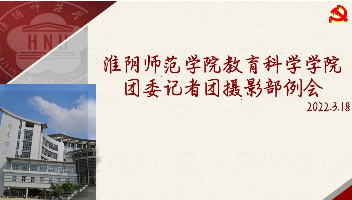 教科网3月28日电 (记者 张佳婷 周宇晗)为提高教科院记者团摄影部干事综合能力素质,3月18日下午,淮阴师范学院教育科学学院记者团摄影部于线上召开了专题培训会。此次会议由记者团摄影部部长卞雯婕主持,全体摄影部干事参加。