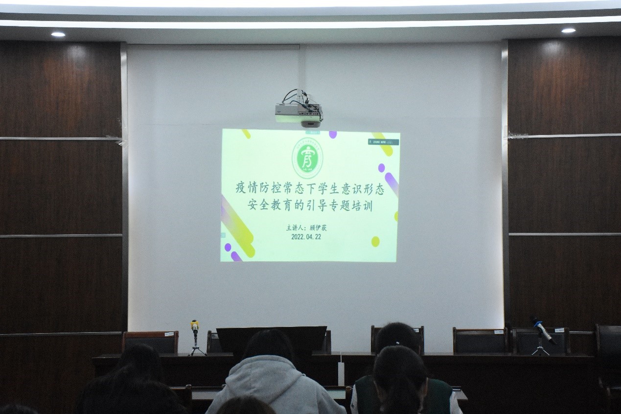 教科网4月26日电(记者 俞蕾 吴雪纯 肖妍梅)为了增强学生干部的服务意识,勉励同学们树立正确的安全教育意识形态,4月22日晚,淮阴师范学院教育科学学院举办“疫情防控常态下学生意识形态安全教育的引导”专题培训,教科院团委书记顾伊荻就疫情防控和安全教育提出具体要求,院团委各部门学生干部参加会议。