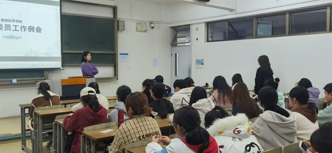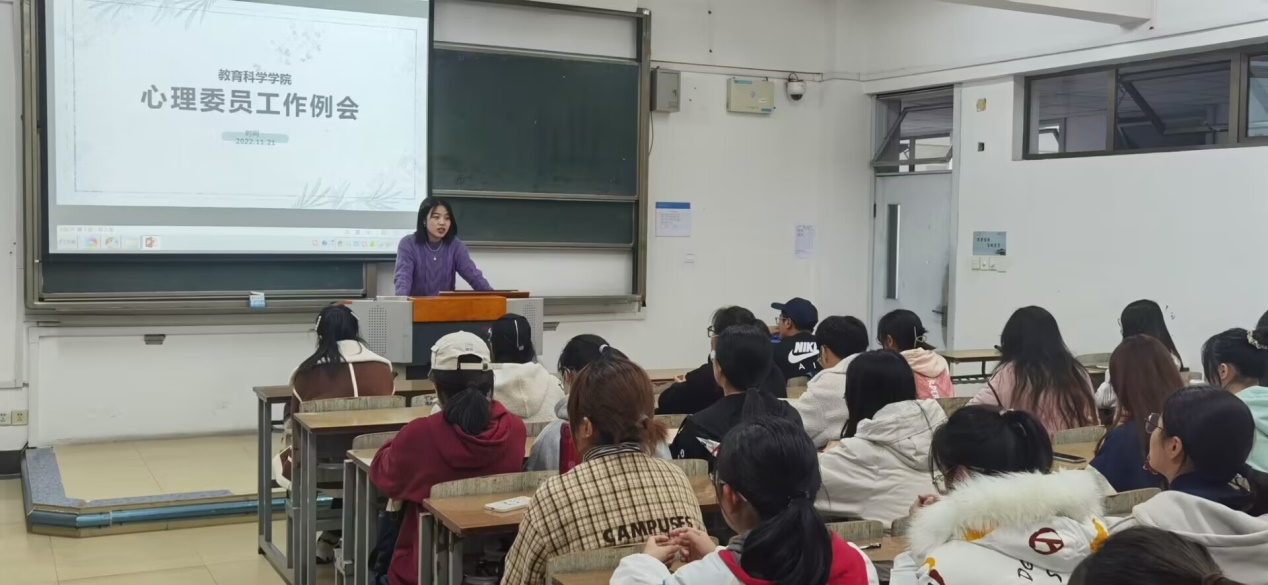 教科院11月22日电(记者 王心钥 姚思语)为加强学院心理委员队伍建设,提升学院心理健康教育工作水平,11月21日晚,教育科学学院于崇文楼1-203召开了全体心理委员工作例会。教科院心理辅导员武美贤老师主持会议,2022、2021和2020级各班心理委员以及院团委心理健康部全体成员参加会议。