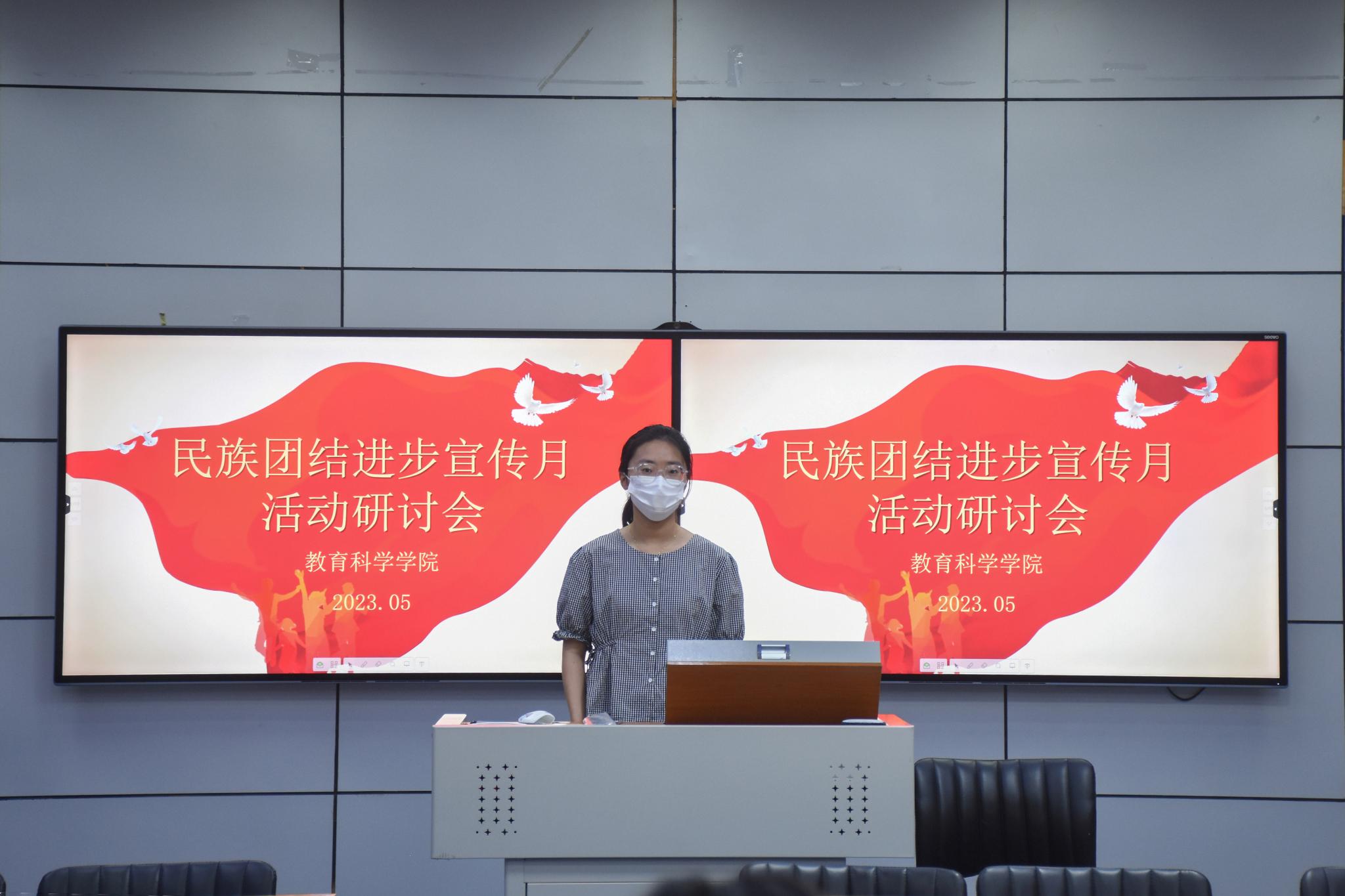 图为张胥燕同学介绍民族团结进步宣传月活动。记者 张洋 摄