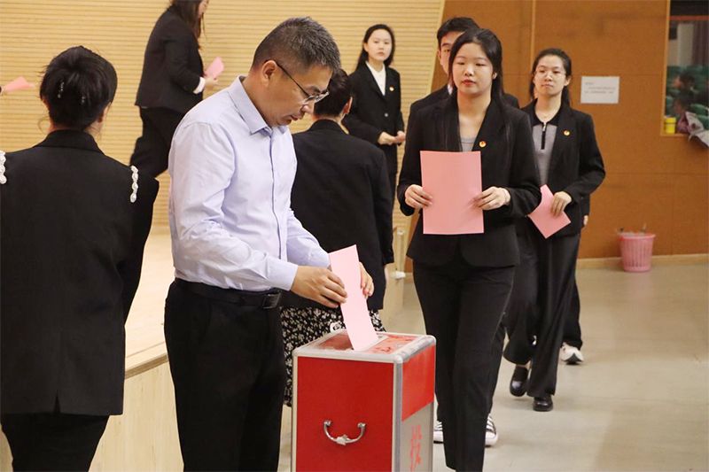 会议伊始,由学生代表审议并通过了本次大会的主席团及工作人员名单,全体起立齐唱国歌。随后,全体候选人依次上台与学生代表见面,并由戚甜甜宣读学生代表个人简介。宣读完毕后,共185名学生代表及候选人通过不记名投票的方式,秉持公平、公正、公开的原则进行投票并交由计票员统计。