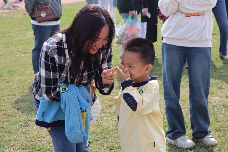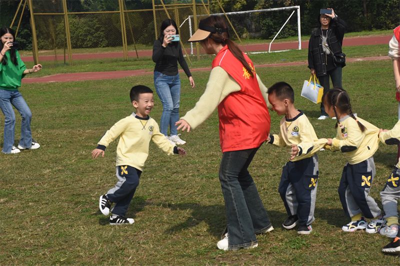 在教科院志愿者与新星幼儿园的沟通联系、统筹安排下,活动有序进行、顺利开展。活动主要分为志愿者小朋友玩游戏和征集幼儿活动心得和照片两个环节。活动伊始,志愿者带领家长和小朋友们在淮师运动场开展集体亲子游戏活动。从开始的木头人,到水果蹲、老鹰捉小鸡等小游戏,小朋友、家长和志愿者们都积极有序参与。在教科院志愿者的陪伴和鼓励下,操场上、草地上、绿树下都留下了孩子们欢乐的笑声。