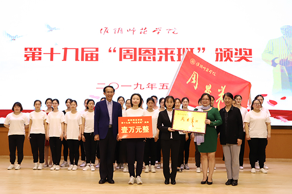 教科院5月13日电(记者 潘架丹) 5月11日上午,淮阴师范学院第十九届“周恩来班”公开评选汇报会在长江路校区崇文楼音乐报告厅举行。经过现场的激烈角逐,由张曦敏老师带领的1606班荣获校“周恩来班”称号,由戴云老师带领的1610班荣获校“周恩来班”提名奖。