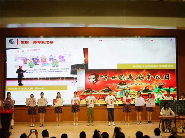 图为与会领导为获得“周恩来班”称号的教科学院1606班颁奖。记者 王聚荃 摄