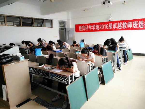 教科网6月24日电(记者 吴伟成)勇气把握现在,实力执掌未来。6月23日下午,教科院小学教育专业“卓越教师班”选拔活动在崇文楼四楼开展。孙云凤、吉咸乐、胡萍、胡宗芳等老师和盛庆琪等同学担任评委。小学教育专业2016级共有67位选手参与选拔。