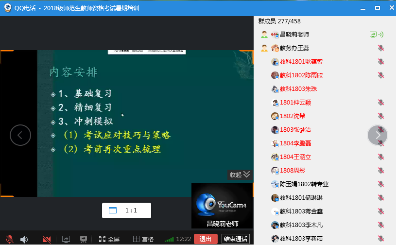 教科网7月21日电 为督促我院2018级师范生尽早进入教师资格证考试的备考状态,力争在2020年下半年全国中小学教师资格证考试中取得优异成绩,7月14日,我院在QQ群课堂组织召开了2018级师范生教师资格证考试动员大会。会议由教学院长任红娟主持,各专业相关授课教师、2018级全体师范生参加了此次会议。