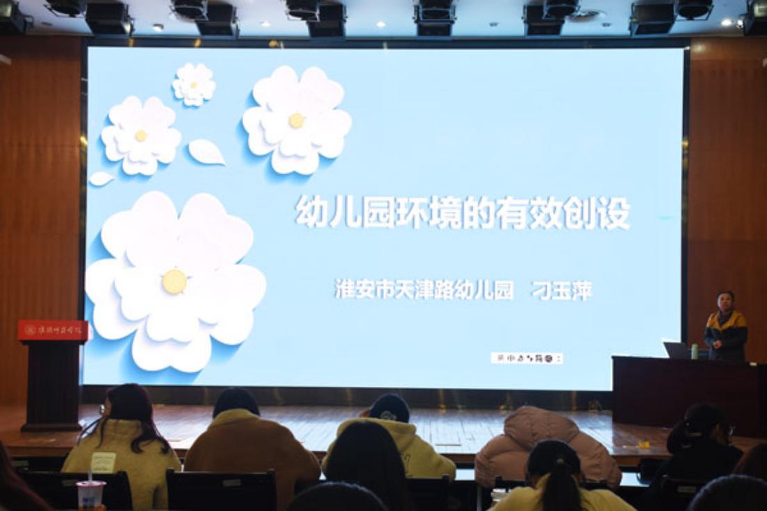 教科网11月23日电 (记者 肖箫 胡梦园 陈逸行)为了提高学前师范生的专业素养,11月20日,淮阴师范学院教育科学学院邀请淮安市学前教育骨干教师、天津路幼儿园刁玉萍园长在图书馆报告厅开展题为《谈谈幼儿园环境的有效创设》的专题讲座。本次讲座由教科院学前教育系主任夏如波主持,教科院2018、2019级和2020级学前师范生参加了本次讲座。
