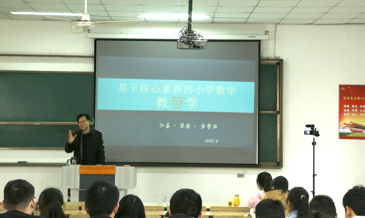 教科网4月15日电(记者 张琪 王志文)4月14日下午,淮阴师范学院教育科学学院邀请江苏省小学数学特级教师、淮安市教学研究室小学数学教研员方学法于崇文阶204开展题为“基于核心素养的小学数学教与学”的专题讲座。本次讲座由教科院教授主持,小学教育专业学生参加讲座。
