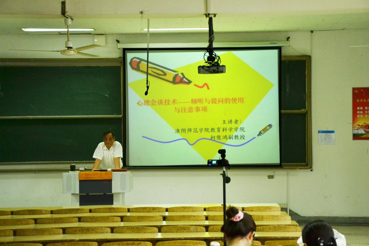 教科网6月3日电(记者 陆亦凡 王志文)6月2日下午,淮阴师范学院教育科学学院于崇文阶103开展题为“心理会谈技术——倾听与提问的使用与注意事项”的讲座。主讲人为教科院副教授柯俊鸿。