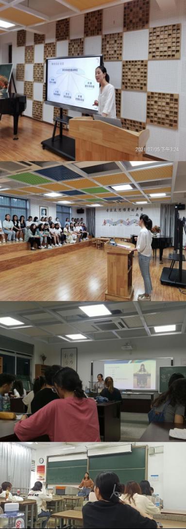 淮安市清河幼儿园教研主任、见实习负责人盛海盈老师则为学前教育专业的学生开展“幼儿园师幼互动能力提升指导”的专题培训。盛老师结合自身工作及学习经验,从为什么要见实习、如何见实习等方面,根据幼儿在园活动内容如晨间活动、室内外游戏等,以风趣幽默的方式向大家讲述了学生在各个环节所应关注的内容。她结合案例多次强调在校理论学习的重要性,指出见实习活动是帮助学生进一步理解知识的过程,便于大家在工作后能快速地适应角色变化。培训中,全体学生积极参与互动,认真记录笔记,个个满载而归。