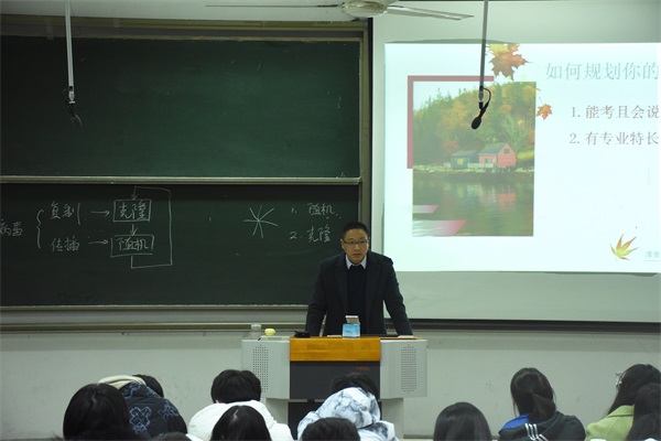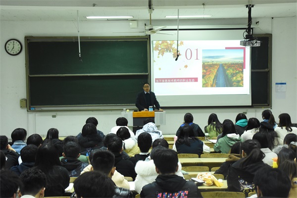 本次讲座主要从“当下信息教师的职业生态”“成就自我的因素”及“对未来人生的规划”三个方面展开。胡卫俊以自身成长经历为例,强调了熟练掌握专业技能及把握竞赛机会的重要性。他提醒同学们,要重视培养自己对于专业课程的兴趣,投入精力,将其转变为一技之长。胡卫俊还介绍了信息技术专业的发展前景、本专业的就业方向及就业单位对毕业生的面试要求,使同学们更清楚地了解自己专业的发展,帮助同学们尽早确定目标,合理进行职业规划。对于未来的规划,胡卫俊有几点建议:一是树立考研目标,能考且会说;二是有专业特长;三是能创立特色,学会创新;四是寻找好的榜样。