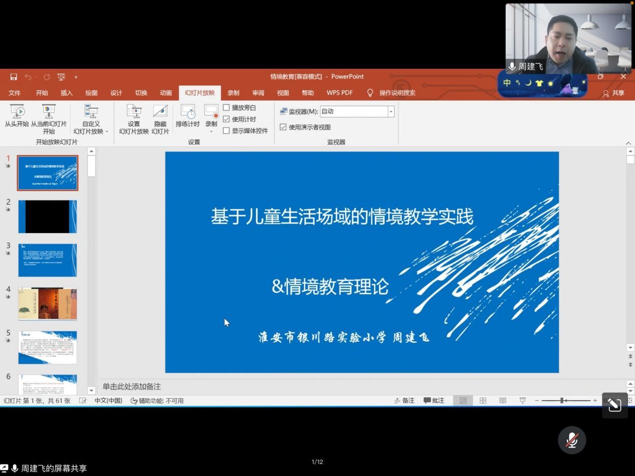 教科网4月15日电(记者 金许儿 周宇晗)为提高教科学子对情境教育理论的理解,在日后的教学工作中能熟练运用,淮阴师范学院教育科学学院邀请江苏省淮安市银川路实验小学副校长周建飞于4月13日下午2点召开线上相关主题讲座。本次讲座由教科院副院长任红娟主持,全体小学教育(文)专业学生参加。