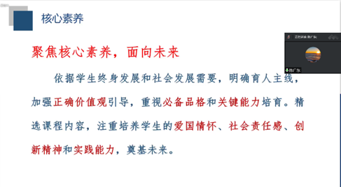 会议伊始,陈广东提出了三个方面的问题,第一是介绍新课标的五个变化,分别是强化了课程育人导向、优化了课程内容结构、研制了学业质量标准、增强了指导性及加强了学段衔接。第二是关于课堂教学现状,陈广东指出,目前的课堂教学存在三个弊端,即重知识,轻育人;重“教”,轻“学”;个体学习多,合作学习少。第三是关于核心素养的培养。