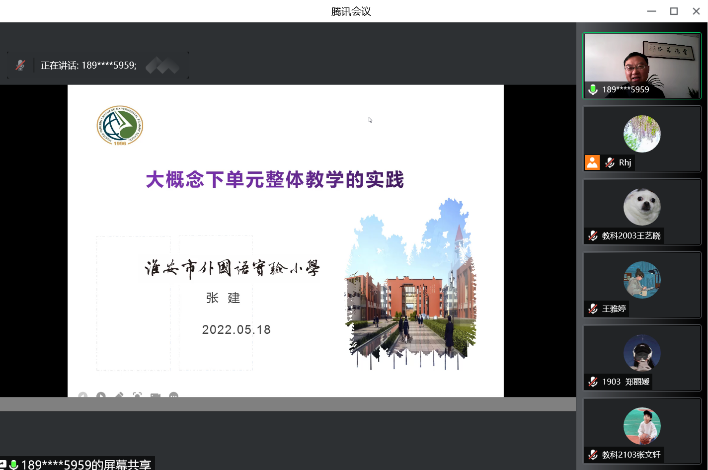 教科网5月19日电(记者 金许儿 吕心语)为理解单元整体教学设计,提升同学们的教学能力,5月18日下午,淮阴师范学院教育科学学院举办第六十九期“基础教育名师讲坛”,特邀江苏省特级教师、淮安市外国语实验小学党总支书记、校长张建在线开展题为《大概念下单元整体教学的实践》的专题讲座。本次讲座由教科院副院长任红娟主持,全体小学教育(文)专业学生参加。