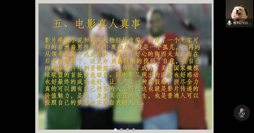 本次活动选择播放影片《弱点》,它向我们展示了爱意最简单的告白。《弱点》是根据2009年美国职业橄榄球队选秀赛的迈克尔·奥林的真实经历改编的。影片讲述的是一个父亲去世、母亲吸毒的黑人迈克尔,从小孤苦无依,流浪街头,被善良的白人陶西一家发现并收养,最后帮助他成为了一位优秀的橄榄球运动员。