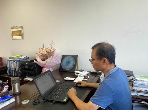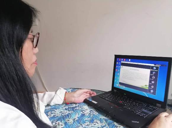 图为学院督导组昌晓莉老师检查线上教学情况。