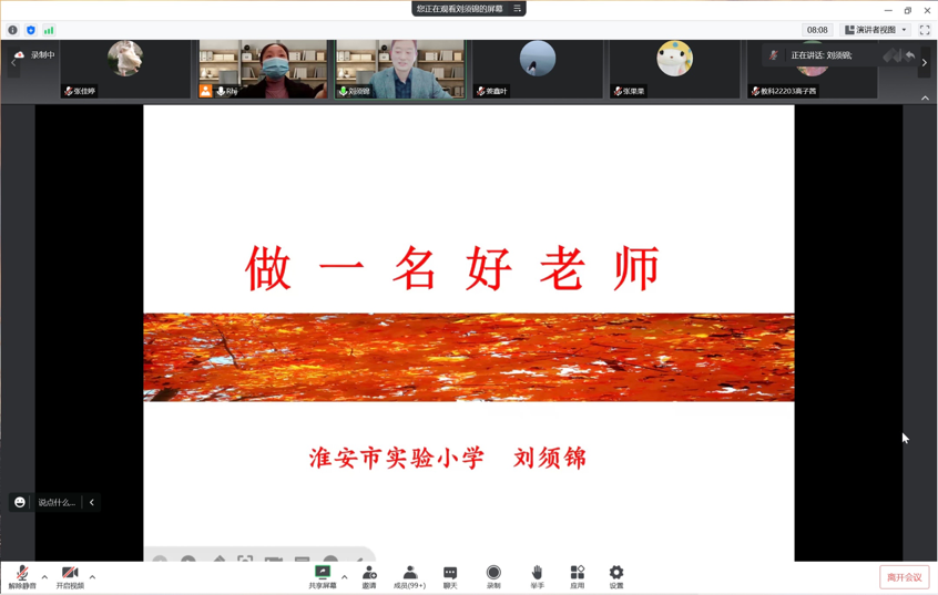 教科网11月24日(记者 张佳婷)11月23日下午,淮阴师范学院教育科学学院特邀江苏省小学语文特级教师、正高级教师、淮安市实验小学副校长刘须锦于线上开展了“做一名好老师”的主题讲座,教科院副院长任红娟主持讲座,教科院全体2022级学生参加。