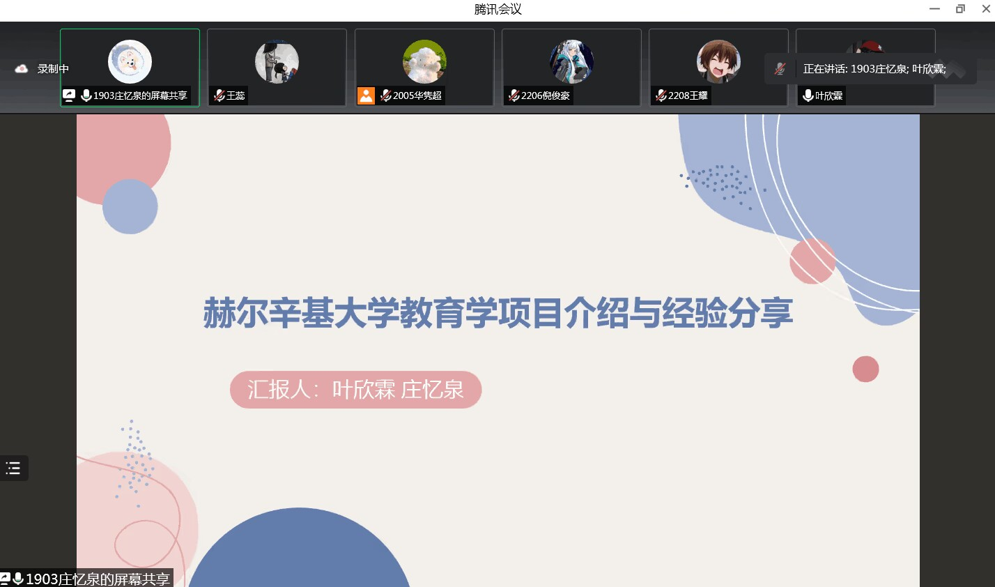 教科网11月29日电(记者 靳雨婷 姚舜禹)为帮助学生更加清晰直观地了解境外学习项目,2022年11月28日晚,淮阴师范学院教育科学学院于线上开展学习经验交流会。交流会由学生代表华隽超主持,邀请庄忆泉等同学分享经验,教科院22级至20级的全体学生参加,教科院副院长任红娟出席会议。